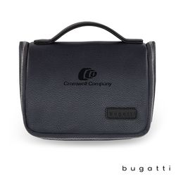 Bring the comfort and familiarity of your own home on the road with the Bugatti Contrast Collection Toiletry Bag. Made of durable pebble grain vegan leather and high quality hardware, this bag will be there for many trips to come. A zippered exterior pocket keeps your more frequently needed items accessible while on the go and the top handle makes the bag easy to carry. Unzip the main compartment and hang the bag using the built-in metal hook to save room on your bathroom countertop. The main compartment features another large zippered pocket, a zippered mesh pocket for smaller items and elastic straps to help keep your items organized. This bag also includes Bugatti zipper pulls and a two-year limited manufacturer warranty.
