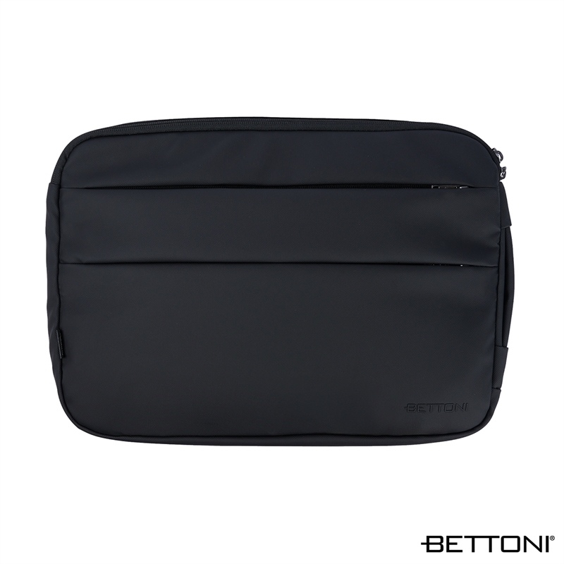 Crafted for the modern professional, the Bettoni® Moda Milano 15.6" RPET Laptop Sleeve combines refined elegance with thoughtful functionality and sustainable design. Made with a water-resistant, durable RPET exterior, the interior is fully lined with ultra-soft fleece and dense foam padding that gently cradle your laptop, safeguarding it from scratches and minor bumps in luxurious comfort. Two concealed front pockets with smooth metal zippers provide discreet, secure storage for your business essentials, keeping everything organized and within easy reach. A sturdy reinforced side handle ensures effortless grab-and-go portability, perfect for quick meetings or commuting between offices. With its premium, elegant business style, and eco-conscious craftsmanship, this sleeve effortlessly complements professional attire and elevates your everyday carry, makes it an ideal companion for the modern professional who values both style and sustainability.