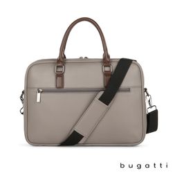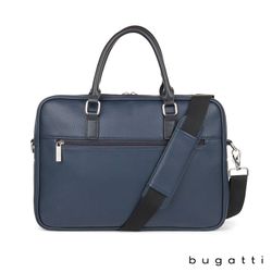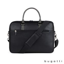 Enjoy your daily commute in style with the Bugatti Contrast Collection Briefcase. Made of durable pebble grain vegan leather and high quality hardware, this briefcase is designed to be the perfect everyday bag. Its reinforced handles, 1 1/2" x 48" adjustable and removable crossbody strap, and zippered exterior pocket with hideaway trolley pass-through strap make this briefcase the ultimate travel companion. The main zippered compartment features a padded laptop section that fits most laptops up to 14", a wide elastic bottle stabilizer, a multi-use built-in organizer for your smaller items and a large interior zippered pocket. This briefcase includes Bugatti zipper pulls and a two-year limited manufacturer warranty.