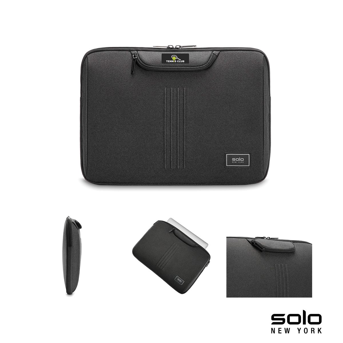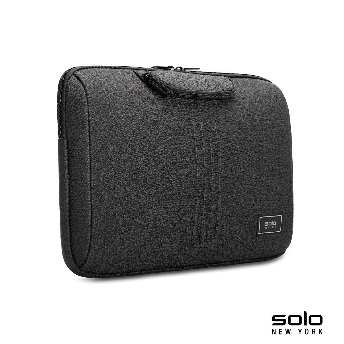 Designed for those who move fast and travel smart, the Traverse Laptop Sleeve from Solo New York combines sleek style with purposeful function. Crafted with sustainability in mind from recycled PET bottles (RPET), it features a fully padded interior that protects laptops up to 16 inches. A zippered front drop pocket keeps essentials close at hand, while the light grey interior lining makes content easy to see. Embossed stripe detailing adds a refined, professional finish to this modern everyday carry.